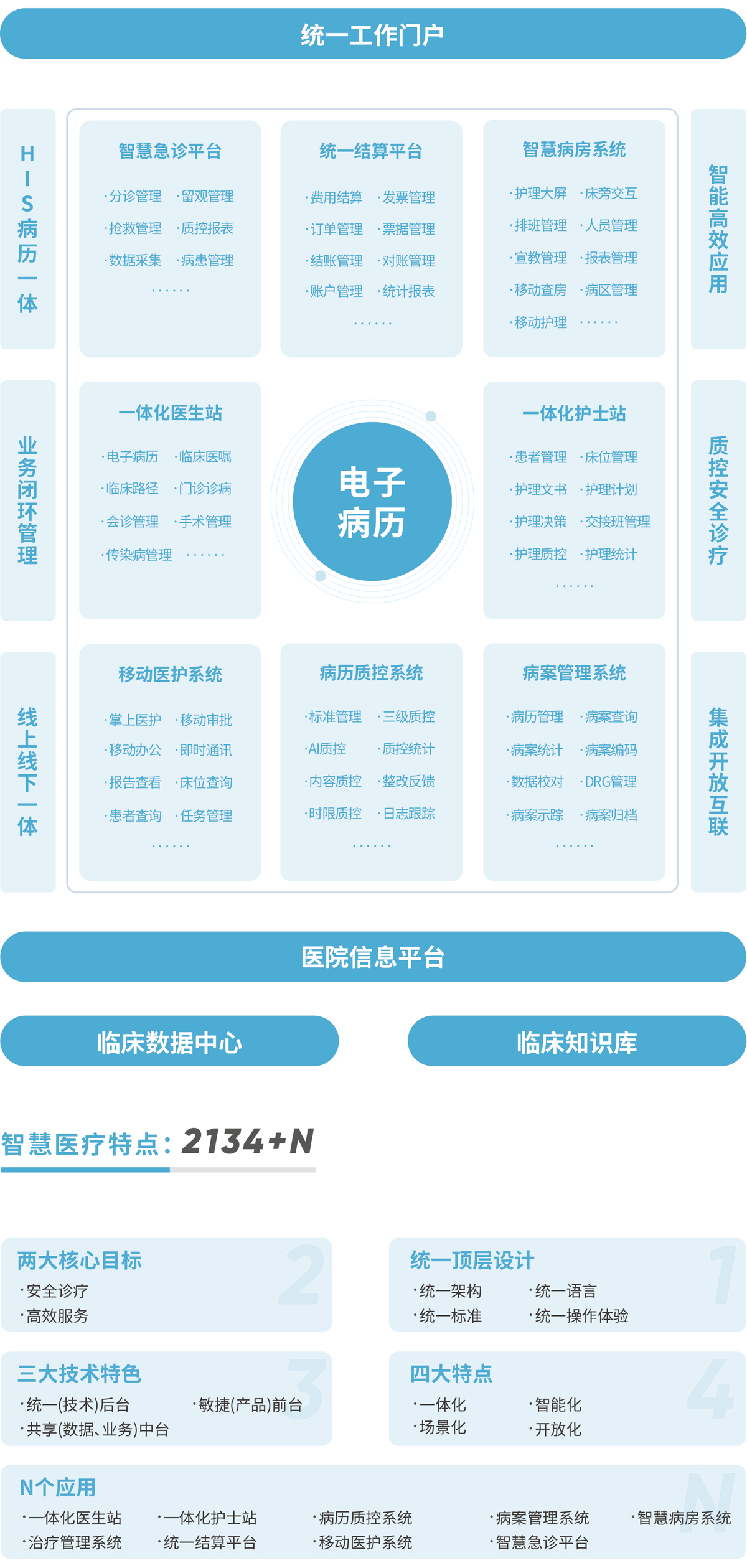 基于智業(yè)中臺架構(gòu),遵循國家行業(yè)政策和信息化標(biāo)準(zhǔn)規(guī)范,結(jié)合多年醫(yī)療業(yè)務(wù)經(jīng)驗(yàn)積累以醫(yī)護(hù)工作者為中心,以臨床日常工作為核心,以“安全高效診療”為核心目標(biāo),實(shí)現(xiàn)業(yè)務(wù)全流程的無縫鏈接,為醫(yī)生、護(hù)士、醫(yī)技等臨床工作者提供高效、便捷、智能、安全的一體化產(chǎn)品,有效提高醫(yī)院的臨床診療工作效率和質(zhì)量。